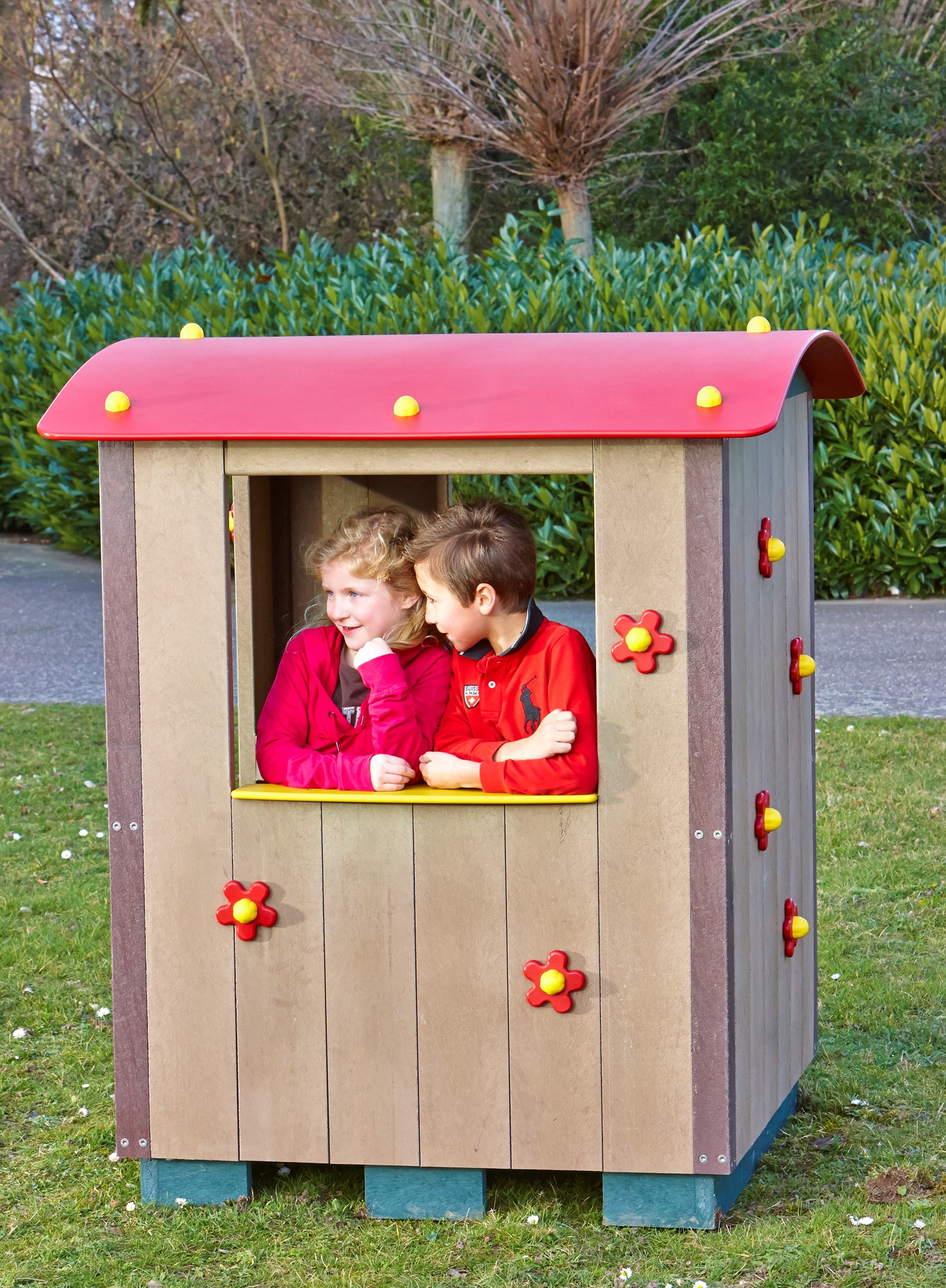 Suitable for children aged 2-7 years old. Children can use their imagination, make friends and role play. Anchorage fixings are included as standard. Made from 100% recycled plastic. Maintenance free.